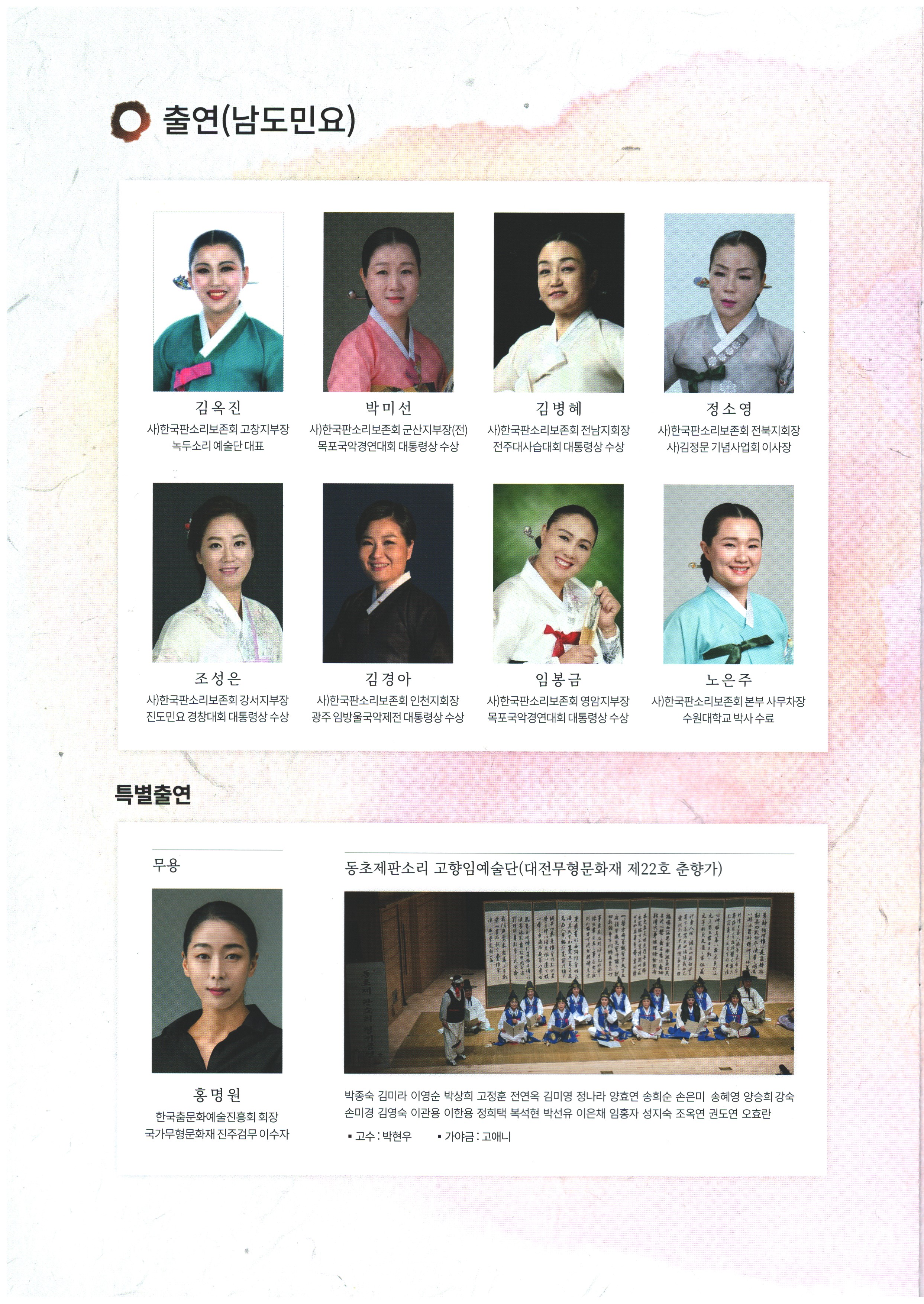 | 2023.11.07 판소리 유네스코 무형문화유산 등재 20주년 기념일 - 김경아 명창 파리 대학 컨퍼런스 (0) | 2023.11.09 |