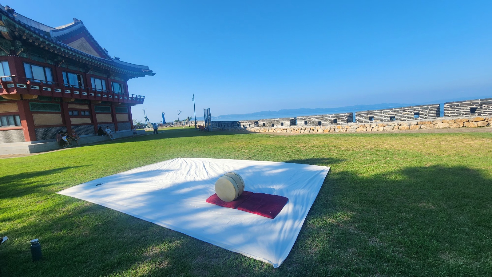 심청각 뜰에 자리를 잡고 무대를 점검.