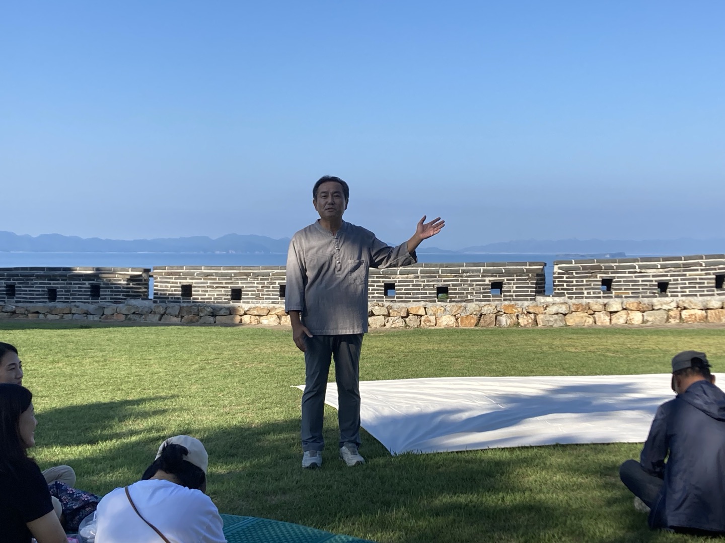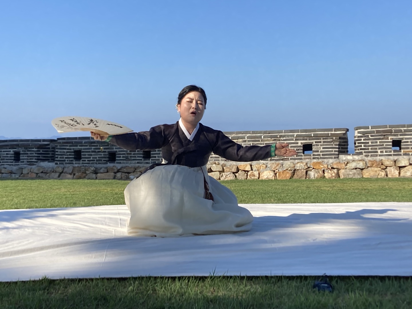 공연장이 따로 없어 멀리 황해도 장산곶을 배경으로 자리를 잡았어요.
