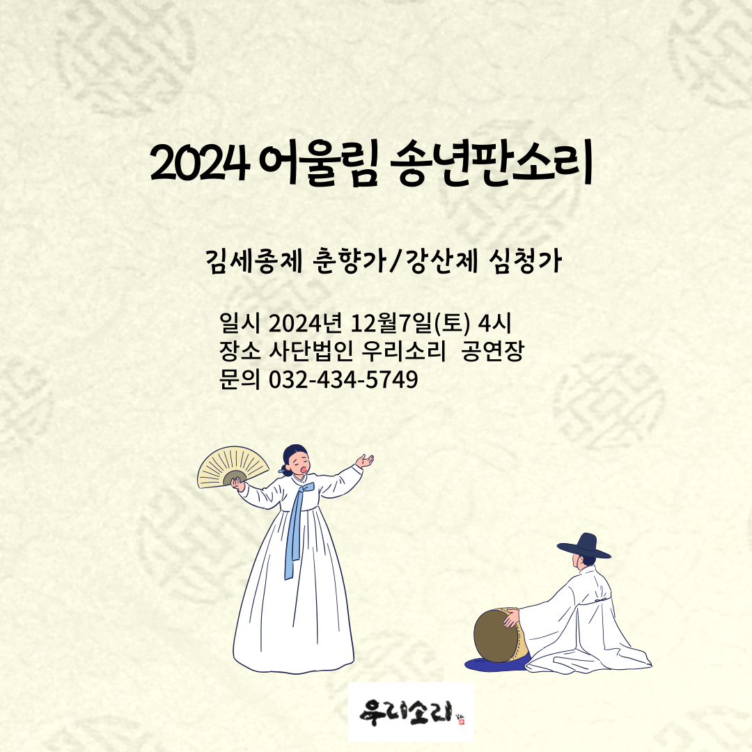 | 2024 어울림 송년판소리 감상회 (0) | 2024.12.10 |