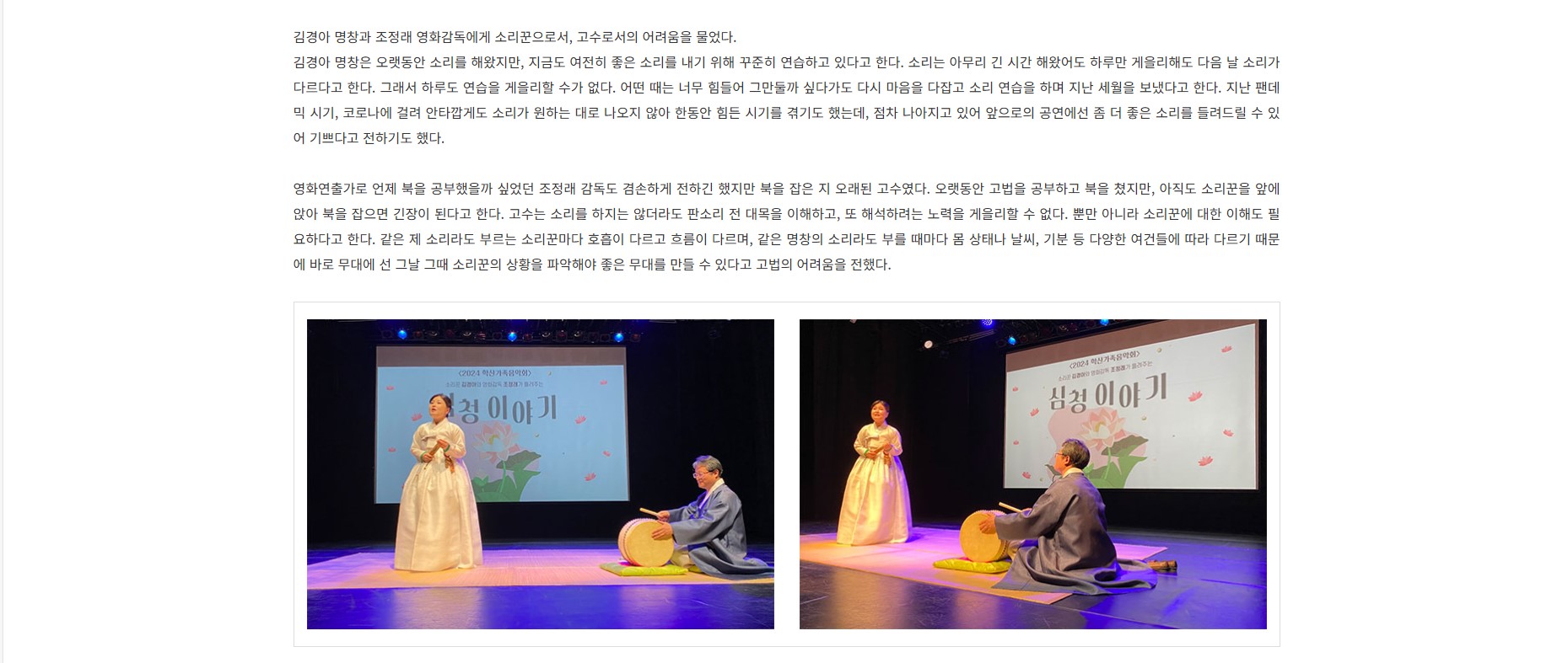 보고 듣는 키노(kino) 판소리 심청가 - 소리꾼 김경아와 영화감독 조정래 편^^